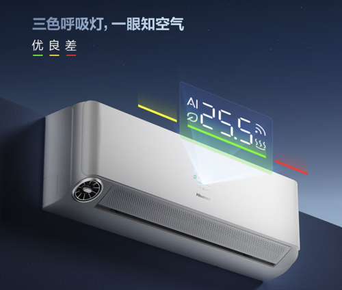 海信新风空调深睡宝X5搭载业界首创的CO₂传感器,通过“绿黄红”三色灯实时显示空气质量,当CO₂超标时海信深睡宝X5会自动启动新风,将CO₂浓度稳定在800ppm以下,让用户直观掌握家庭呼吸状态。值得一提的是,海信新风空调深睡宝X5以CO₂智能监测技术填补行业空白,上市即热销。