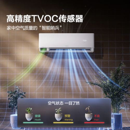 净化上,海信新风空调璀璨U6挂机搭载的TVOC传感器会实时监测甲醛、油烟,一旦超标面板就红灯预警,同时联动HPEA滤网与Hi-cat抗病毒技术快速净化,哪怕偶尔在书房吃外卖,油烟味也能很快消散。